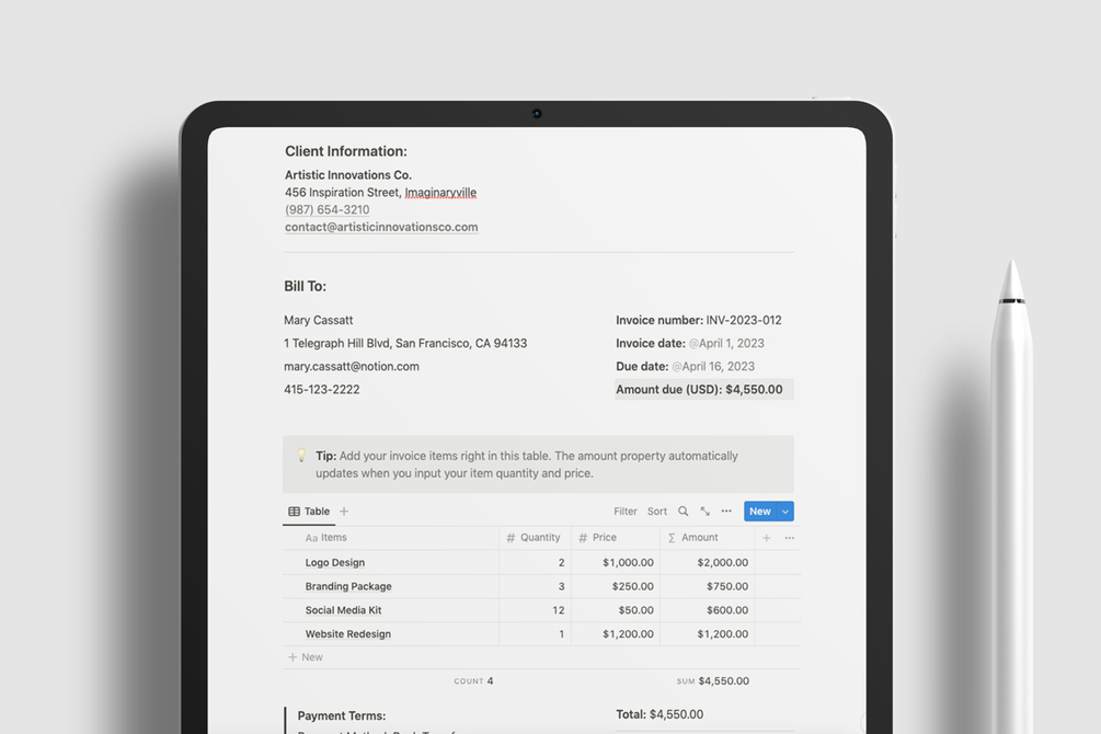 Unleash your creative prowess while ensuring a seamless payment process with this cutting-edge Freelancer's Invoice Template.
